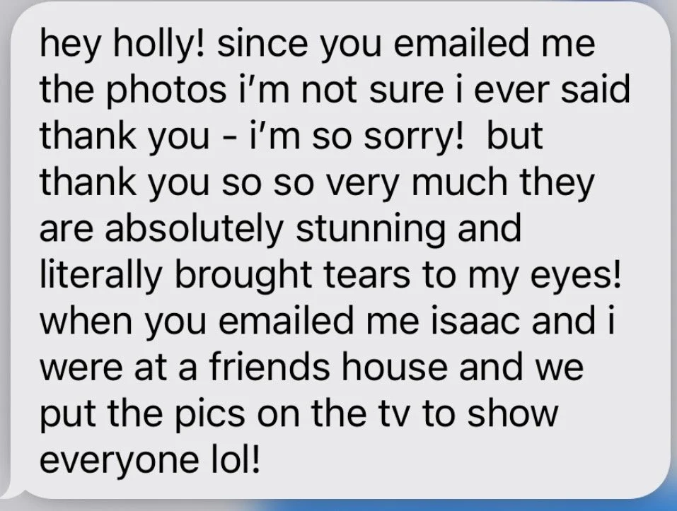 “My husband and I recently used Happy Chance Photo for our micro-wedding and Holly could not have been more amazing. We had a VERY tight timeline for the day and for photos, which inevitably leads to a bit of chaos. But with Holly's incredible communication and patience leading up to, during, and after our big day everything went perfectly. I was a wedding florist for nearly 10 years, so I understand just how hard it is to find the right wedding vendor. We found the perfect one with Holly! She absolutely nailed our vibe and inspiration, and was a wonderful, kind dream to work with. You can't go wrong with Happy Chance Photo, and can put your absolute trust for your special photos in Holly's hands! We didn't have a single worry, and had so much fun. We could not recommend more!!!!"